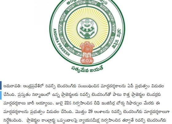 Modalities on Reverse tendering process in Andhra Pradesh