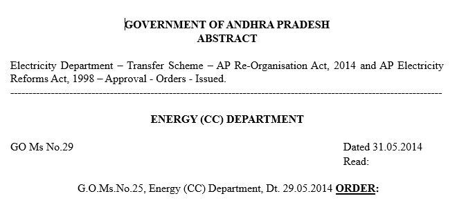GO 29 Transfer Scheme AP Electricity Reforms Act 1998 Dated 31 May 2014