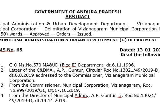 vDevelopment Department Vizianagaram Municipal Corporation Delimitation of Vizianagaram Municipal Corporation into fifty (50) wards Approved Orders Commissioner and Director of…