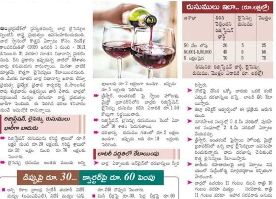 Withdrawal of all existing Bar licences in Andhra from November 23