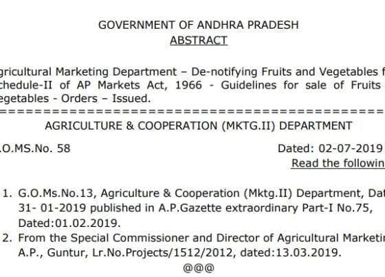 The government of Andhra Pradesh have issued orders with GO 58 on 2 July 2019 denotifying Fruits and Vegetables from…