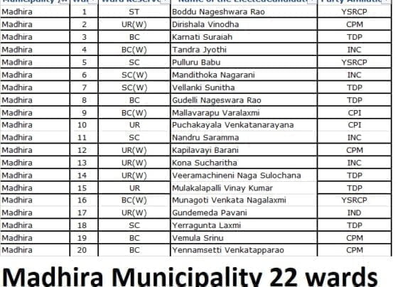 Madhira Municipality 22 wards