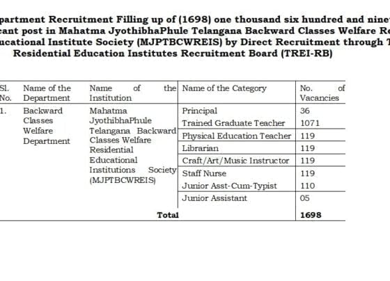 MJPTBCWREIS 1698 Direct Recruitment Telangana Recruitment Board