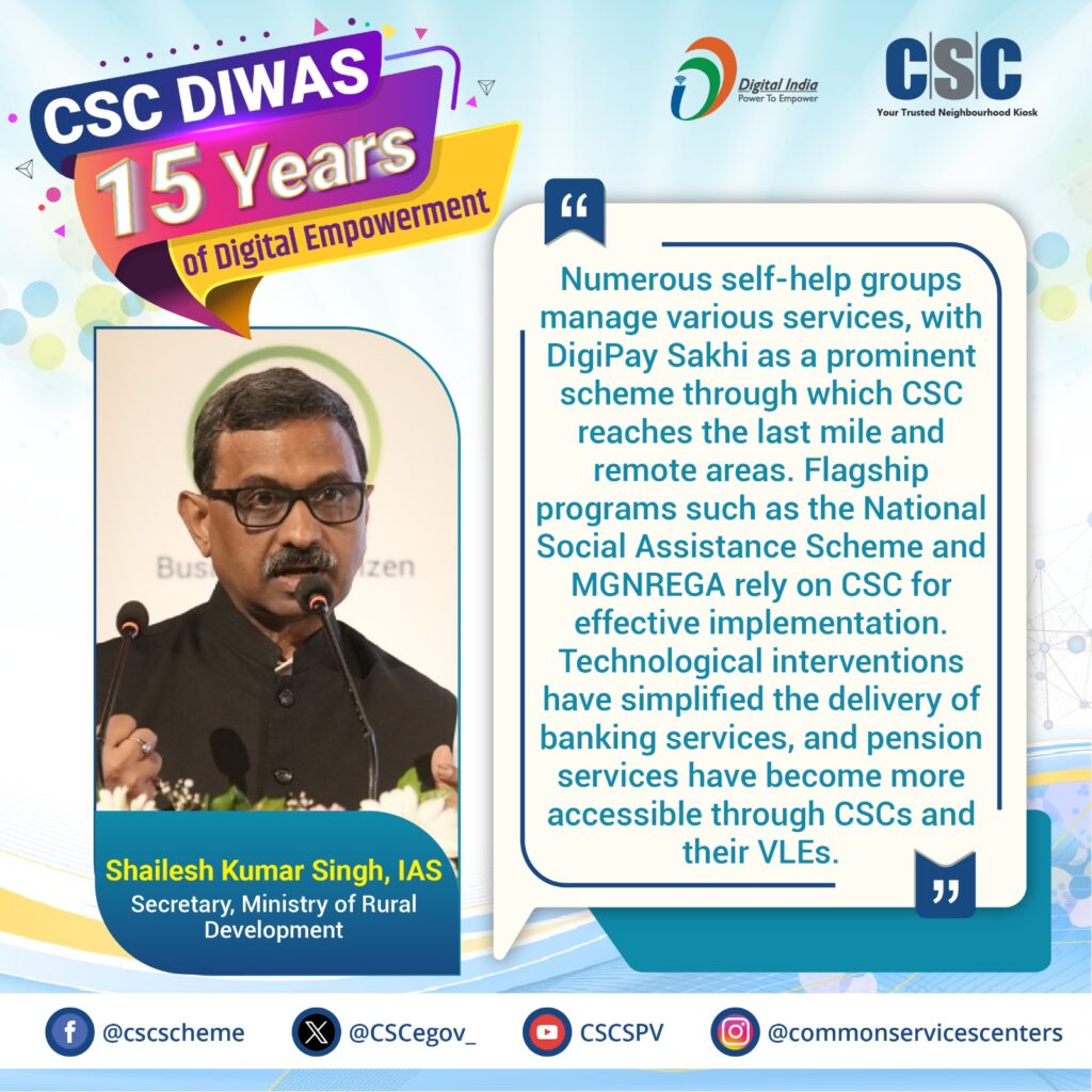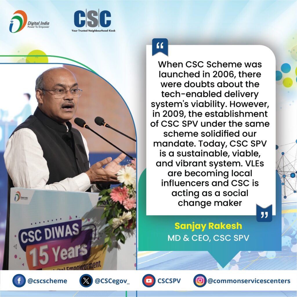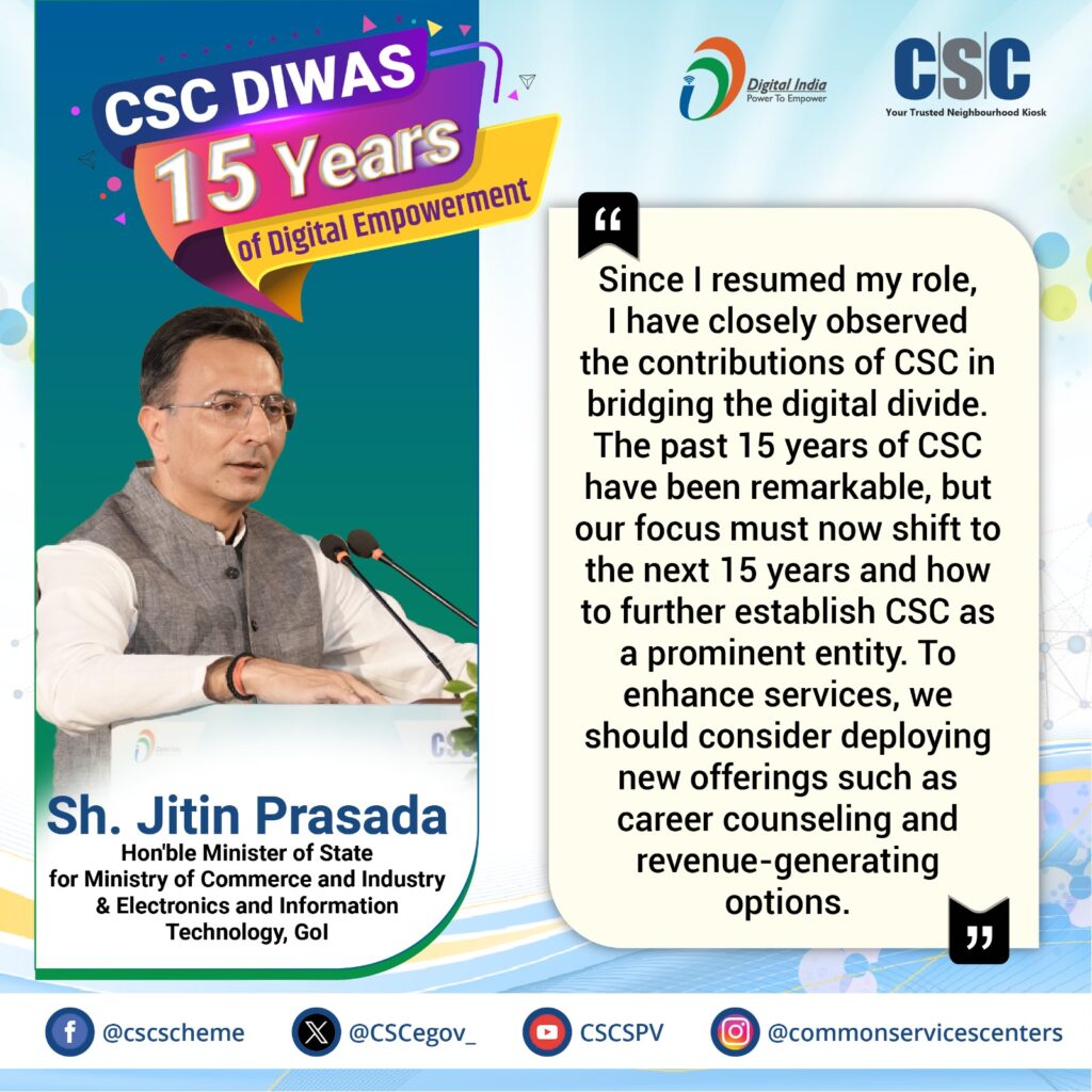 In conclusion, the CSC Diwas celebration was a significant milestone in the journey of CSCs. It highlighted the achievements of the past 15 years and set the stage for future growth and transformation. With continued support from government leaders and collaboration with private partners, CSCs are poised to reach new heights, further empowering citizens and bridging the digital divide in rural India. As we look forward to more meaningful engagement and impactful initiatives, CSCs will continue to be the cornerstone of Digital India’s vision.