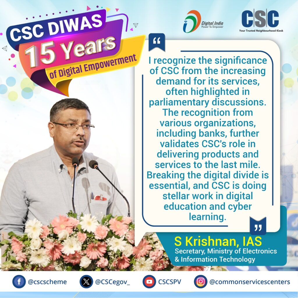 Mr. Krishnan’s commitment to addressing the pressing issues faced by CSCs has been invaluable. His insights have been crucial in fostering a larger engagement with government agencies and private partners, aiming to elevate CSCs to the next level. His vision is to make CSCs the go-to place for any digitally challenged individual in rural areas seeking support to access essential services.