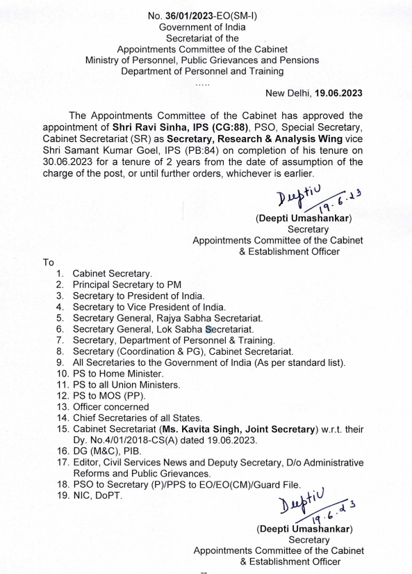 Ravi Sinha was Appointed as RAW Chief, Ravi Sinha was Appointed as the New Secretary of Research and Analysis Wing RAW In a recent development, IPS officer Ravi Sinha has been appointed as the new Secretary of the Research and Analysis Wing (R&AW). This appointment has garnered significant attention in the security and intelligence circles. With his extensive experience and commendable track record, Sinha is poised to bring fresh insights and strategies to strengthen India’s national security apparatus further.