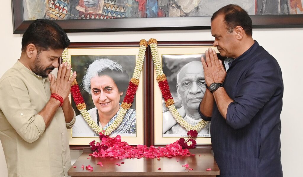 On the solemn occasion of the death anniversary of former Prime Minister Indira Gandhi and the birth anniversary of former Deputy Prime Minister Sardar Vallabhbhai Patel, Chief Minister Revanth Reddy, along with Minister Komatireddy Venkat Reddy and MLA Raj Thakur, paid heartfelt tribute. The leaders gathered at the Jubilee Hills residence, where they offered floral tributes to the portraits of these eminent figures, honoring their legacy and contributions to the nation.