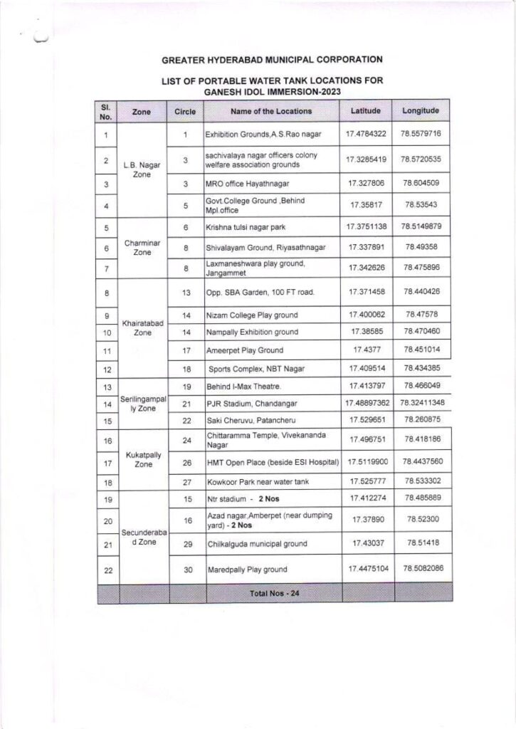 In preparation for the grand event, the GHMC (Greater Hyderabad Municipal Corporation) has already set up 74 collection points for Ganesh Nimajjanam across the city. In addition to the 30 existing immersion points, 28 portable water tanks have been strategically placed in 46 more locations. These measures have been taken to facilitate the immersion process for the convenience of the devotees.