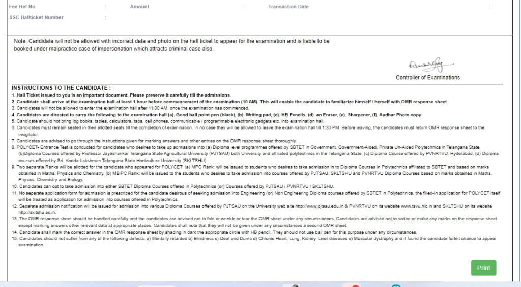 Step 5: Your TS POLYCET Hall Ticket will be displayed on the screen. Double-check all the details mentioned on the hall ticket for accuracy.