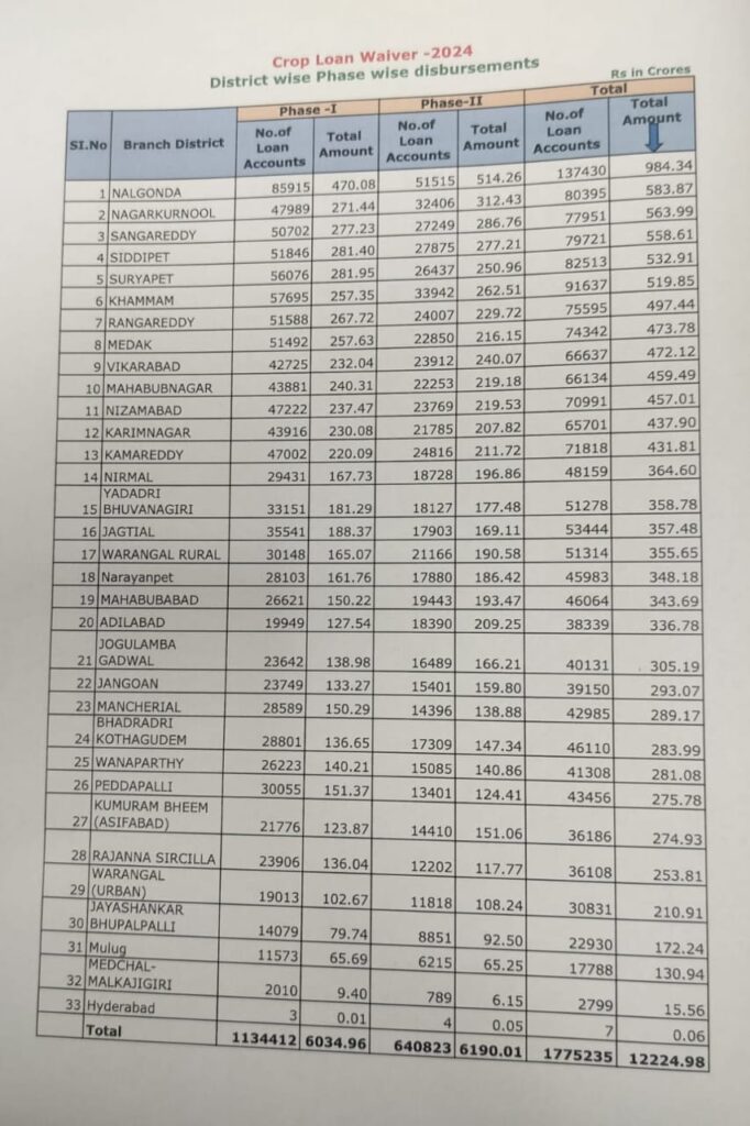 Telangana Crop Loan Waiver List 2024 second phase 1.5 Lakhs